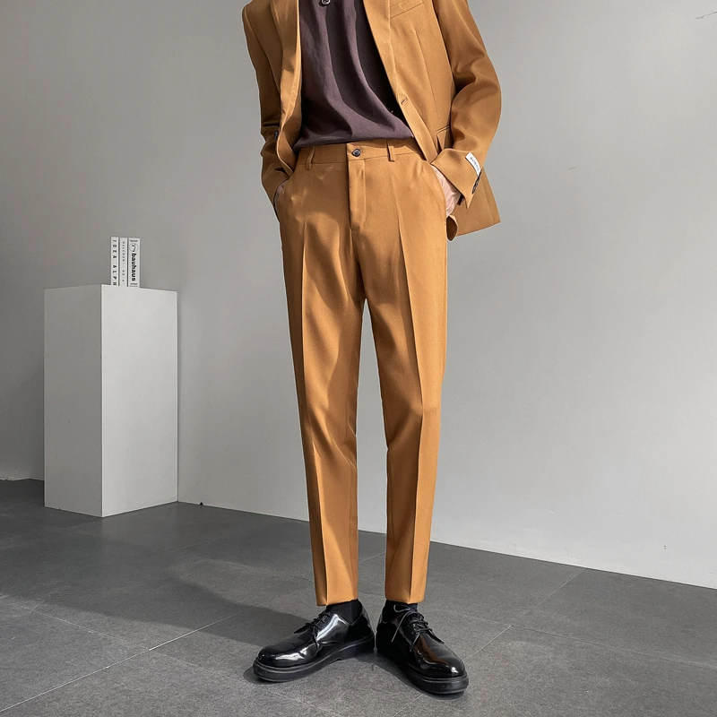 5 Colors Suit Pants Men Business Casual Slim Fit Ankle Length Suit Pants Male Korean Fashion Vintage Suit Trousers Man Pant Suit Pants Aliexpress